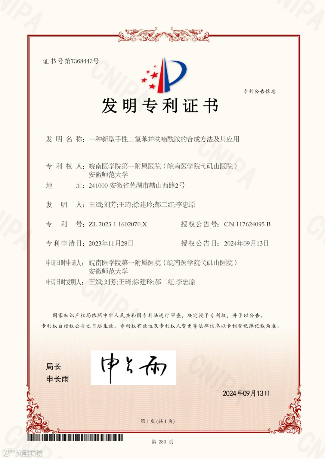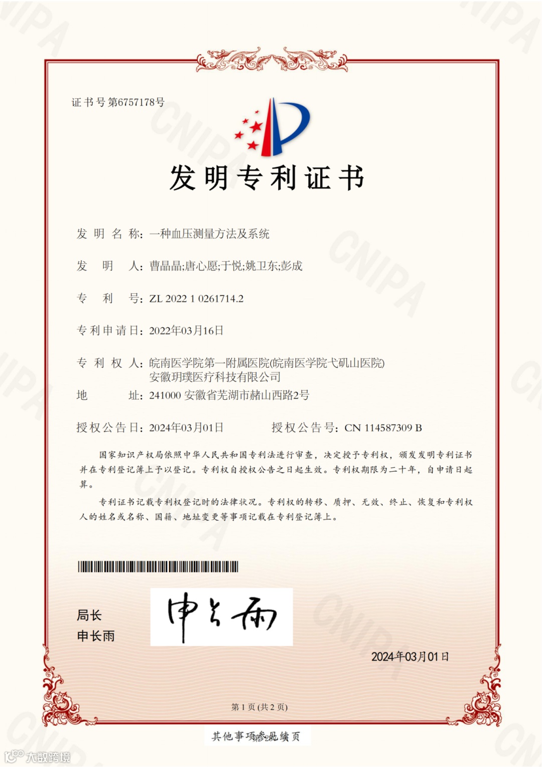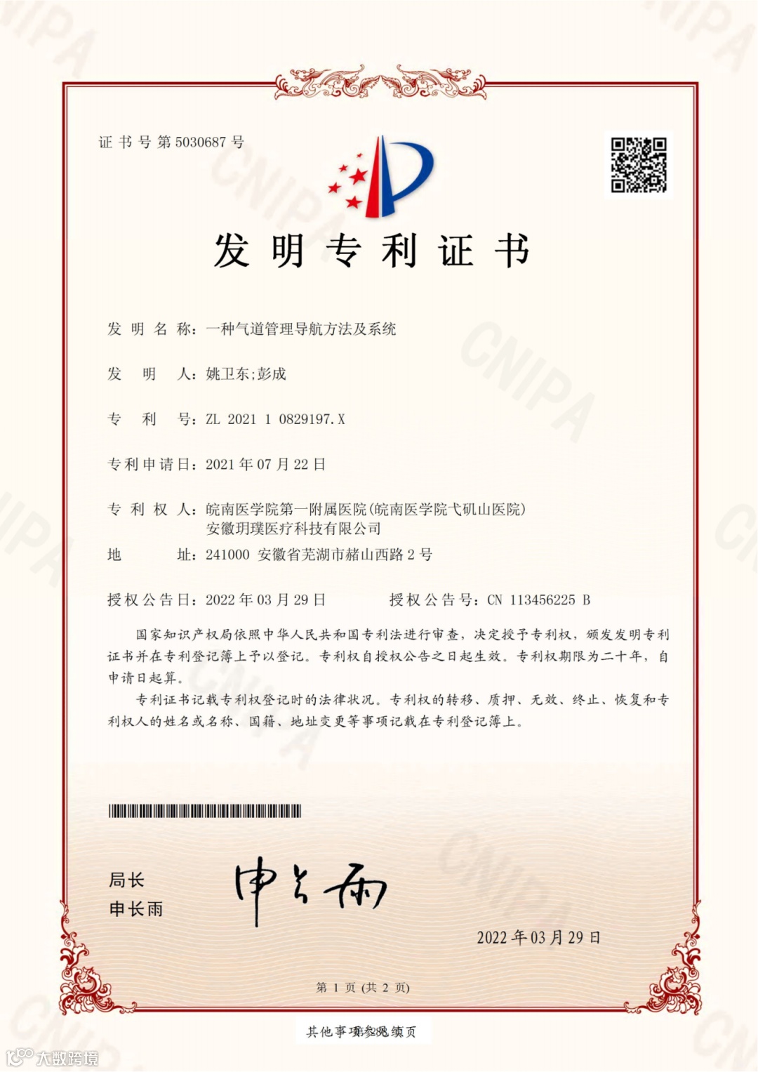 近五年,科室共申请获批发明专利7项,实用新型专利20项,外观专利2项,计算机软著1项,其中实现专利转化3项。