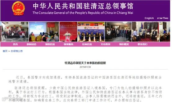 2019年1月,3名中国人持旅游签证在清迈各大旅游景点为他人拍摄婚纱照,泰国警方认为存在商业行为将其逮捕,随后以外籍人士非法从业相关罪名对3人提起诉讼。