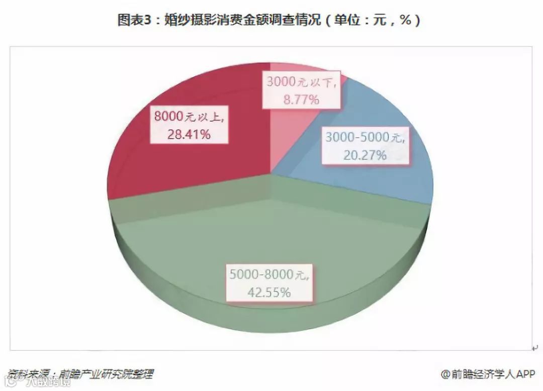 数据显示,近年来每对新人婚礼的平均开销是7.6万。在拍摄婚纱照的新人中,接近一半的新人消费5000-8000元,接近1/3的人消费8000元以上。