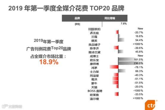 它在2019年第一季度全媒介广告花费超过了兰蔻、雅诗兰黛等国际大牌,排名第2。