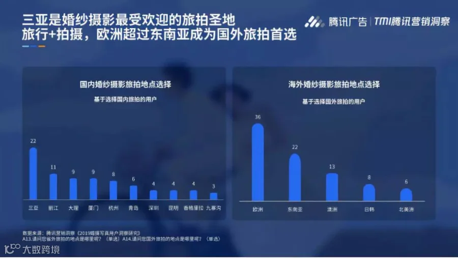 在结婚人群中90后+95后占比已突破一半,而他们更愿意展示真实、随性的自己,不想再钻进传统摄影棚,80%的95后选择了“旅拍”“街拍”。