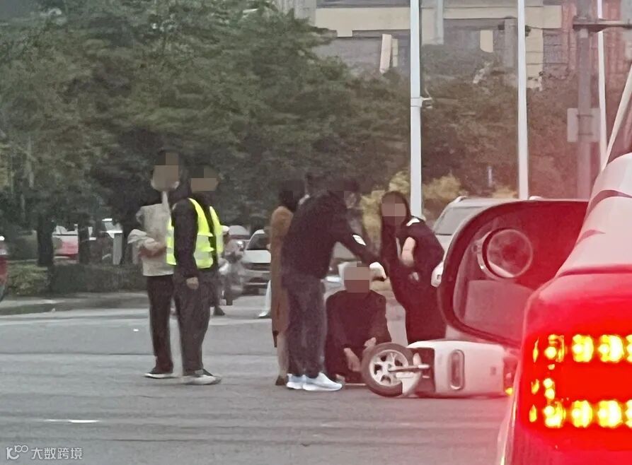 无独有偶,今早七点四十分左右在迎宾大道,也发生了一起涉及老人的交通事故。现场画面中,一位老人坐在地上,身旁已有多位路人围拢,推测是事故后进行帮扶或查看情况,目前暂未得知老人伤情及事故详情。