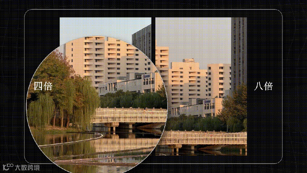 还有今年的8倍的光学品质变焦,完全可以说是玩了个文字游戏。苹果说的8倍是通过裁切传感器,来形成所谓的200毫米的焦段变焦。照片的画质,你稍微放大点,还是可以看到和4倍的光变有明显的区别。虽然8倍长焦的画质也称得上可以用,但跟质感还是有点距离。