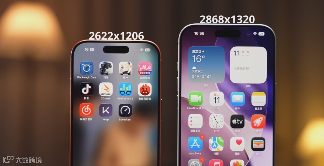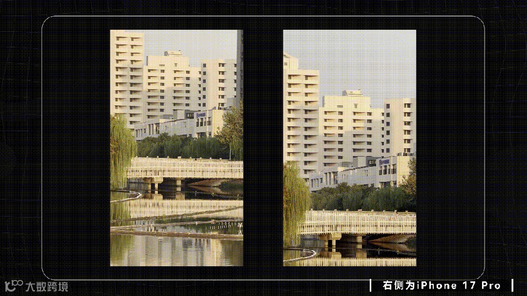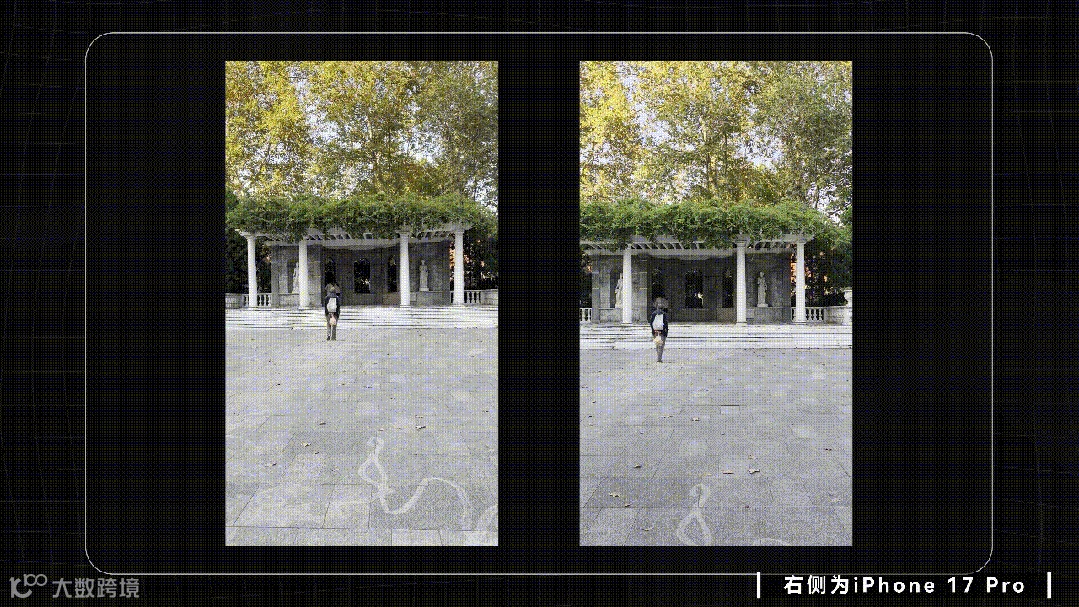 但有两个升级,峰值亮度达到3000尼特,比前代呢是有提升50%,放在户外对比,17Pro的画面清晰度肉眼可见更高。