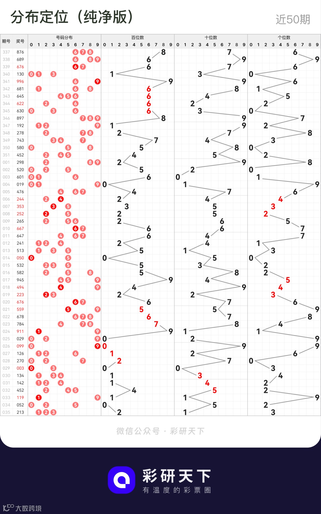 号码冷热、走势、分布、遗漏、定位等重要信息