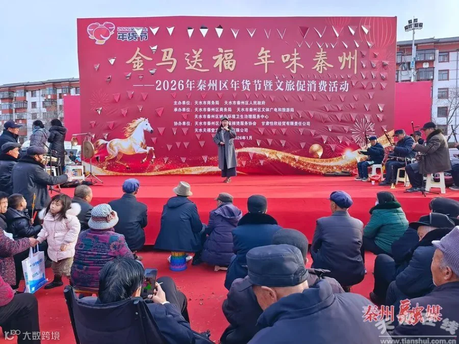 (天水房产网转载报道)春节临近,年味渐浓,消费市场持续升温。为激活节日消费潜力,释放消费活力,近日,由市商务局、区政府主办的“金马送福 年味秦州”2026年秦州区年货节暨文旅促消费活动在伏羲广场启幕。