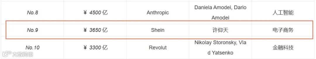 凭借敏捷的供应链体系和数字化运营能力,SHEIN已连续四年位列《2025全球独角兽榜》前十,估值达3650亿元人民币。