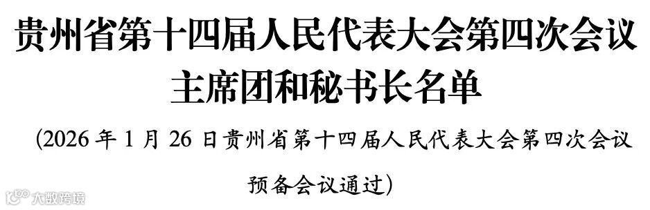 导读:1月26日,省十四届人大四次会议在贵阳举行预备会议。会议经表决,选举产生了省十四届人大四次会议主席团和秘书长。