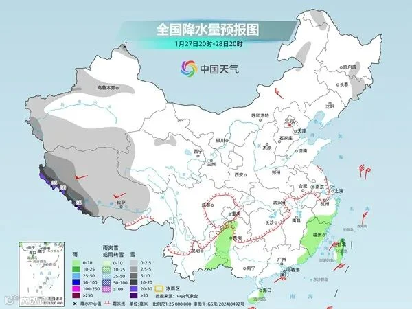 29日,西藏强降雪过程结束;之后,中东部大范围降水又将登场。