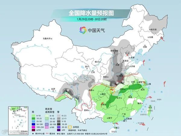 预计1月29日至31日,北方大部地区自西向东有小雪,陕西中南部、山西南部、河南西部、湖北北部有中到大雪,局地高海拔山区有暴雪;南方大部多阴雨天气。