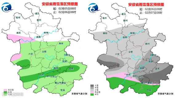 6日(周五):全省阴天,淮河以北南部雨夹雪转小雪;江淮之间有小雨转雨夹雪或小雪,其中大别山区部分地区中雪,局部大雪;沿江江南有中雨,其中东部转雨夹雪或中雪,部分地区大雪,高海拔山区有大雪到暴雪。