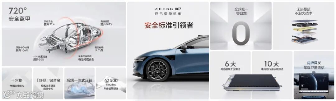 从品牌创立开始,极氪就将深厚的安全底蕴写进品牌基因。交付超19万,全球唯一零自燃,极氪式安全经历过无数真实案例验证。得益于近30年造车底蕴和集团资源全面赋能,来自浩瀚原生纯电架构的安全天赋,极氪式安全在极氪007身上,既有传承,又有进阶。在车身工艺方面,极氪007采用一体式压铸后端铝车身,它的扭转刚度达到43500 N·m/deg,不仅领先同级,更超越百万级豪华轿车;在材料创新上,极氪007应用全新的「纤晶」铝合金材料,流动性更高,成型后的压铸件一致性更好,韧性更强,屈服强度提升10%以上。同时,极氪007的后碰变形量也减少了16%。