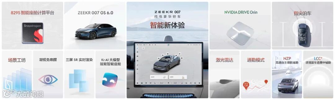 极氪007首发搭载极氪智能化领域两大最新科技成果:ZEEKR 007 OS 6.0系统和「浩瀚智驾」智能驾驶系统,让极氪实现对智能化头部梯队的超越。
