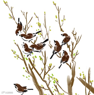立春最后五日“鱼陟负冰”,陟是升的意思,鱼因为水底气暖,感知阳气而上升,此时水面上还有没完全融化的碎冰片,如同被鱼负着一般浮在水面。