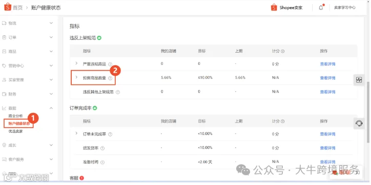 您可以在【中国卖家中心>>数据>>账户健康状态】页面查看过去30天的预售商品比例。