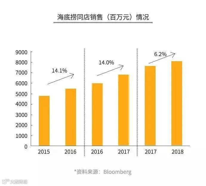 这种竞争或许从数据也能看一些变化,2018年海底捞同店销售量增速下降到6.2%,同比下降55.7%。当然这也可能是单店营收天花板临近,我们不得而知,因为只有一年的数据下滑,还不能充分说明问题,还得通过接下来一两年的数据变化来下判断。