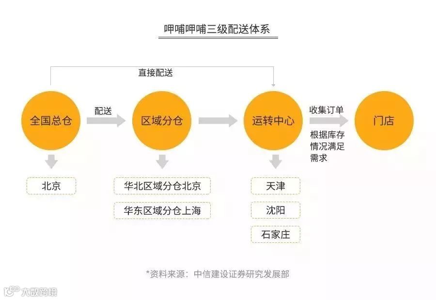 第三,高度标准化和规范化的三级配送体系保证品质,呷哺呷哺设置了全国总仓——区域分仓——运转中心三级网络架构。全国总仓以及华北区域分仓设置在北京,华东区域分仓设置在上海,天津、沈阳、石家庄设置了运转中心。根据当地市场门店数量、布局、食材消耗量以及配送成本综合考量建立配送网络。