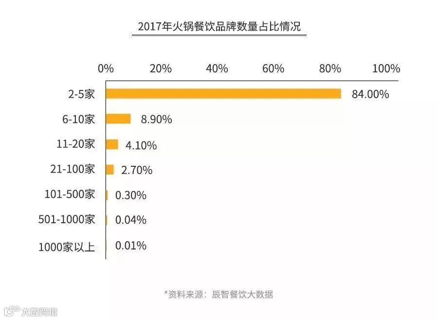 就像小编在前文提到的,火锅行业极度分散,市场排名前五品牌占有率只有5.5%左右,而剩下的94.5%的市场,就都分散在一些区域性品牌、特色火锅品牌和独立运营的小品牌。