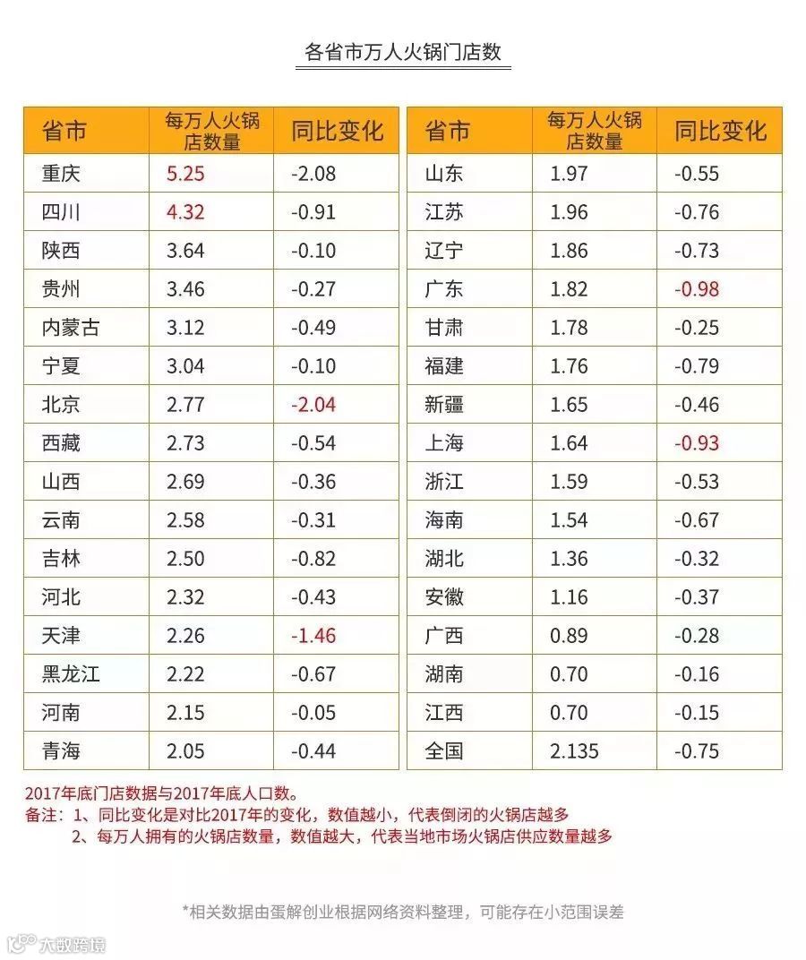 重庆2017年底有近3万家火锅店,营业额约占全市餐饮的1/3,主城区火锅店密度高达每平方公里近20家,平均不到300米就有1家火锅店。在如此激烈的竞争下2017年重庆火锅店倒闭了5000家。