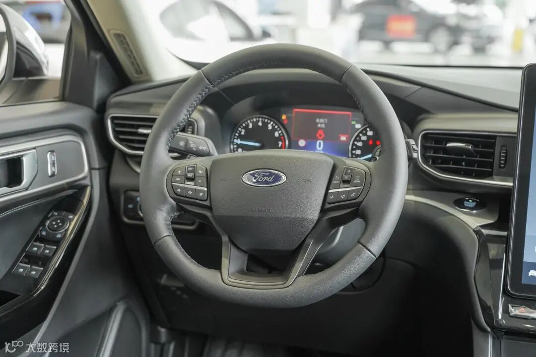 来到车内,相对于外观,探险者的内饰就有点突兀了,这主要“归功于”12.8英寸的竖置中控屏。尺寸不算夸张,但造型不敢恭维,和很多新能源汽车如出一辙,不过放在一台硬派SUV上,确实不知道福特的设计师们是怎么想的。抛开设计,探险者内饰的用料还是非常良心的,而且配置丰富,主动安全配备齐全,属于一步到位的车型。