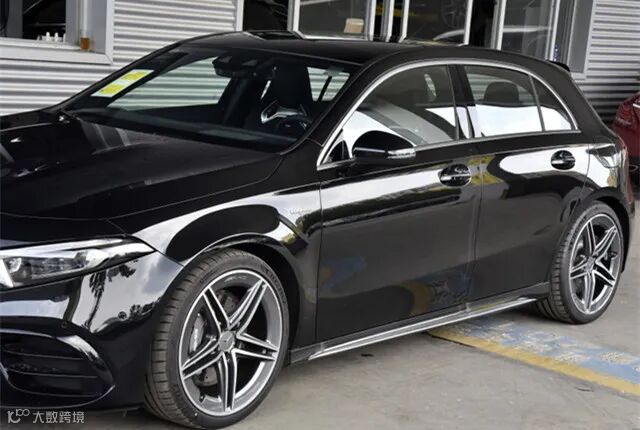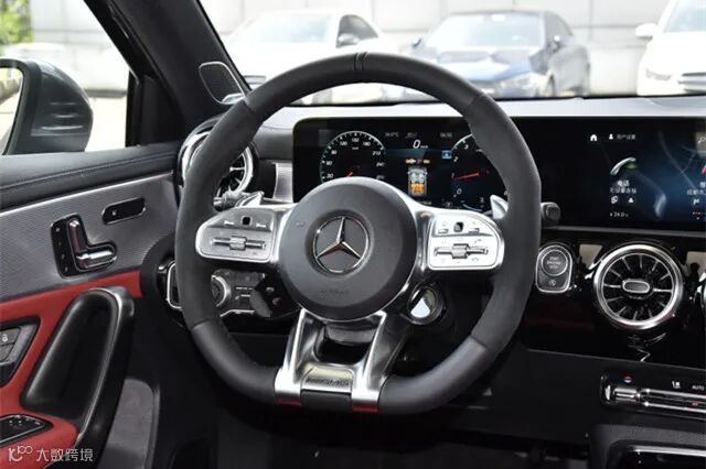 前排内饰的布局和设计同样秉承了豪华、大气、现代的理念,悬浮式的玻璃面板集成了10.25英寸多媒体屏幕、10.25英寸液晶仪表盘,奔驰经典的平底式多功能方向盘、炮筒式空调出风口、电子档杆也很有辨识度。中控台上大量采用真皮、钢琴烤漆面板、哑光银装饰板,在黑\红色、黑\灰色主色调的烘托下显得质感十足。并在此基础上,新车还配备了胎压监测、被动行人保护、360度全景摄像头、ACC自适应巡航、车道保持、并线辅助、碰撞预警\主动刹车、疲劳提醒、自动泊车,此外,AMG A级全系配备了几何光束LED大灯,投射亮度和投射距离也十分出色。