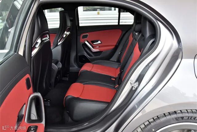 实际的空间并没有想象中的紧凑,毕竟这台车的轴距长度达到了2729mm,轴距达到了A+级轿车的尺寸范畴,所以,AMG A45虽然主打轿跑车,但是作为一台四门五座车来说,其后排的乘坐属性仍旧得到了一定保障,坐进去空间没什么问题。其豪华车的属性同样发挥的淋漓尽致,车内轻易摸得到的地方均采用真皮覆盖,由此带来不错的座椅包裹性和支撑性,具有不错的舒适性。
