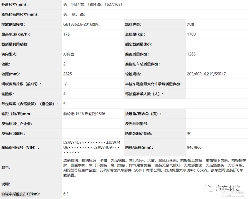 动力上,新车搭载了1.6L自然吸气发动机,最大功率92kW(125PS),油耗申报值6.3L/100km,传动预计继续匹配CVT无极变速器。此外,新车还将推出1.3T车型。
