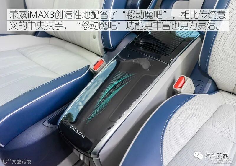 荣威iMAX8采用2+2+3的传统MPV座椅布局,而“移动魔吧”的加入让这一布局更显灵活。第二排座椅给最尊贵的人的乘坐的,所以必须尽可能地豪华,相信荣威设计师也参考了别克Avenir车型的第二排座椅,采用高强度座椅骨架、多层材料填充的坐垫、多点气动按摩等。
