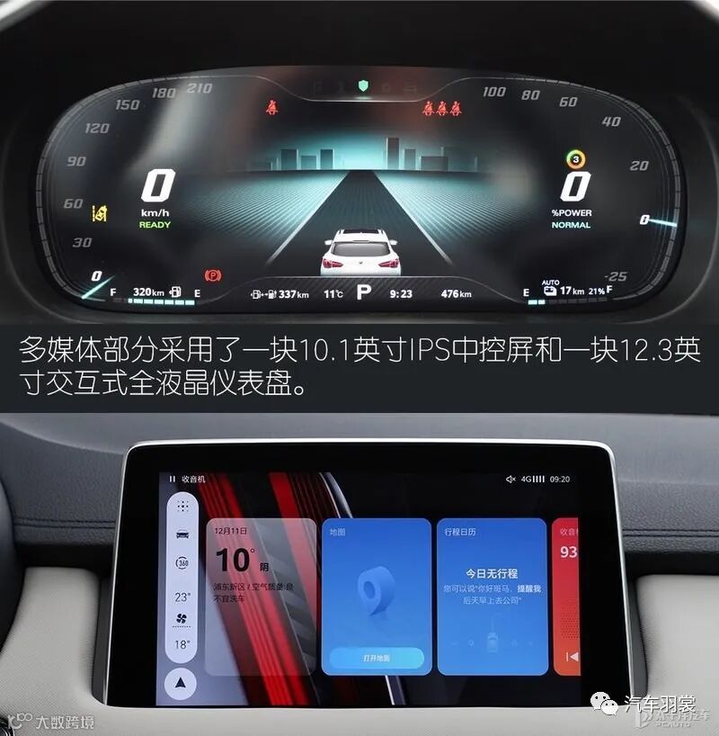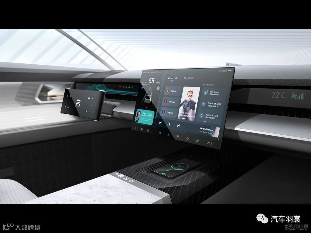 从公布的图片可以看到,新车中控屏可以进行升降,且车机系统内显示该车的续航里程可达到874公里。而在发布会上,智己汽车透露新车还将搭载宁德时代的“掺硅补锂”技术电池,能量密度高达300Wh/kg,最大续航里程超过1000km,并可实现超长的20万公里零衰减表现。新车装备11KW大功率无线充电,其充电效率几乎与传统充电无差异。一小时可以充10.5度电,按照NEDC工况,相当于70~80公里的续航,可以保证一天的日常通勤。