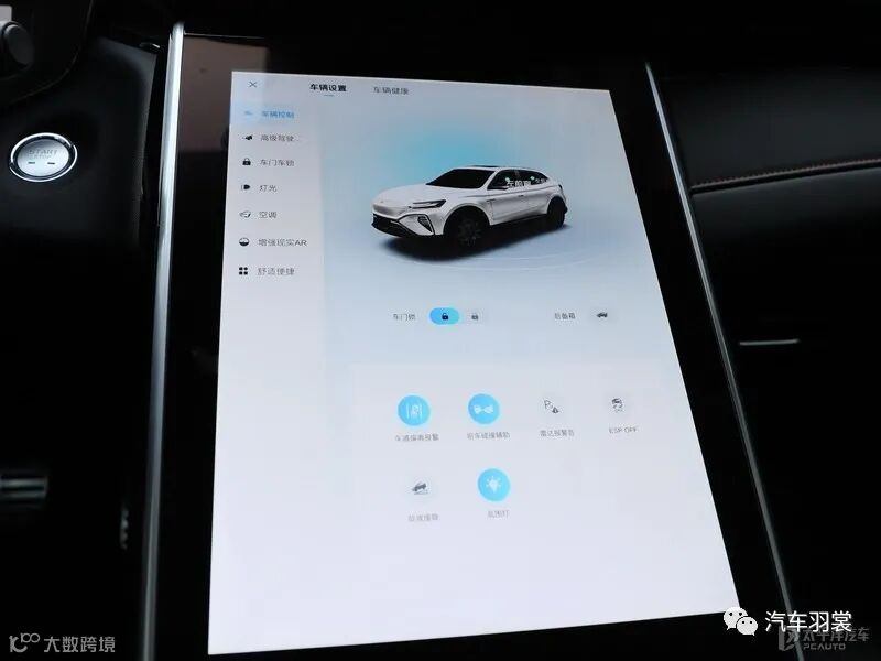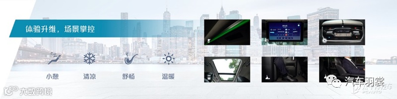 操作区域采用屏幕与实体按键相融合的设计形式,形成19.4英寸的超大交互界面,呈现纯粹通透的高级观感,成为整车内饰的设计核心。高集成式的科技电子旋钮简便操作,与车内外硬件、氛围与功能结合。钻石切面效果更具质感,双向拨钮使操作更高效。