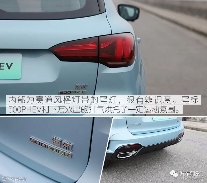 新车尾部同样沿用了领航燃油版的设计思路,尾灯组采用了全息立体式设计,点亮后颇具辨识度。轮毂部分,新车还首次采用了19英寸双色刀锋样式的轮圈,与侧裙部分的橙色饰条相辅相成。右后侧翼子板上的充电口以及尾部的“PHEV”尾标表明了其新能源身份。