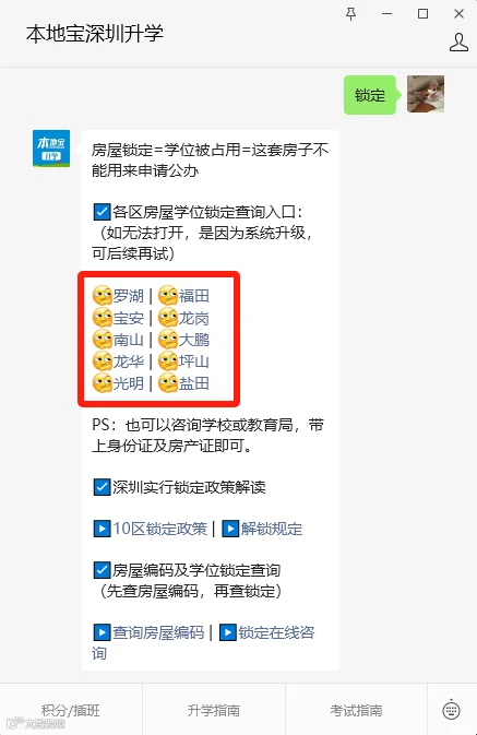 进入【本地宝深圳升学】回复【锁定】