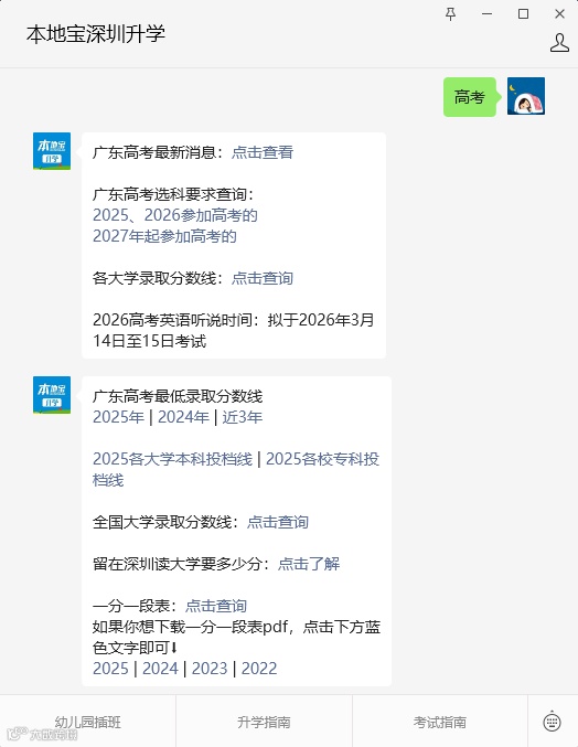 点击下方名片,进入【本地宝深圳升学】回复【高考】获取广东高考录取分数线、高考选科要求等全攻略