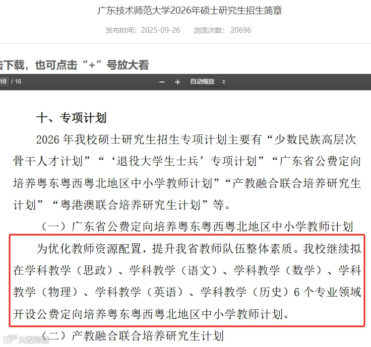 公费定向培养粤东粤西粤北地区中小学教师(简称“教师专项”)在广东省已实施多年,是每年高考、研究生考试报考热门。