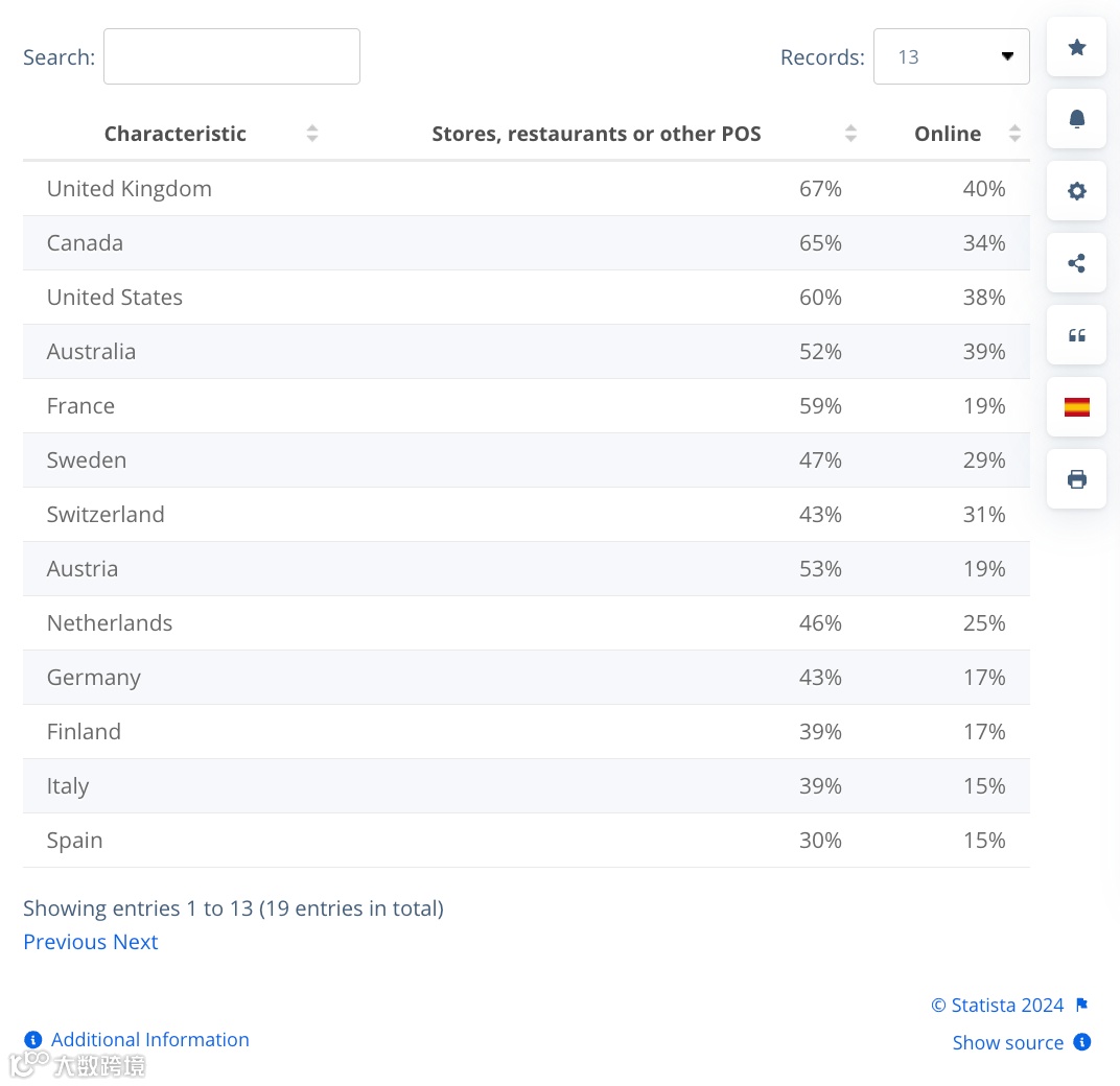 据最新估计,全球 Apple Pay 用户超过 5 亿,在 iPhone 上激活了这项服务。Statista 的消费者洞察报告显示,英国是 Apple Pay 普及率最高的国家,其次是加拿大、美国和澳大利亚。