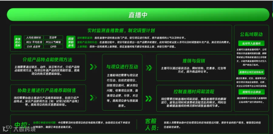 明确直播目标与定位,完成选品策划、脚本撰写、场景搭建及设备调试。提前进行商品上架、优惠设置、直播预告发布,并通过私域流量预热引流,确保开播前具备基础曝光与用户蓄水。