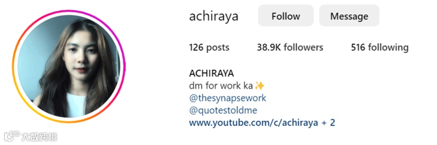 Achiraya是一位才华横溢的艺术家,主要发布时尚和生活领域相关内容。在Q2,她的粉丝就实现了513.9%的增长率,贴子的覆盖率和曝光量分别为7.20k和10.79k。