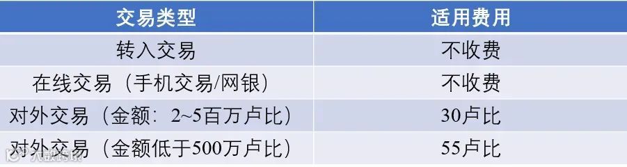 RTGS交易的费用: