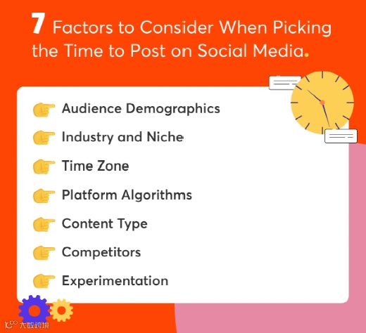 以上只是基于持续研究和市场营销人员意见的一些发布时间建议。在决定社交媒体发布的最佳时间时,还应该考虑的重要因素包括: