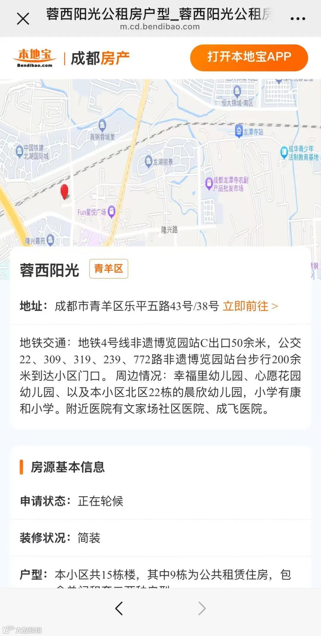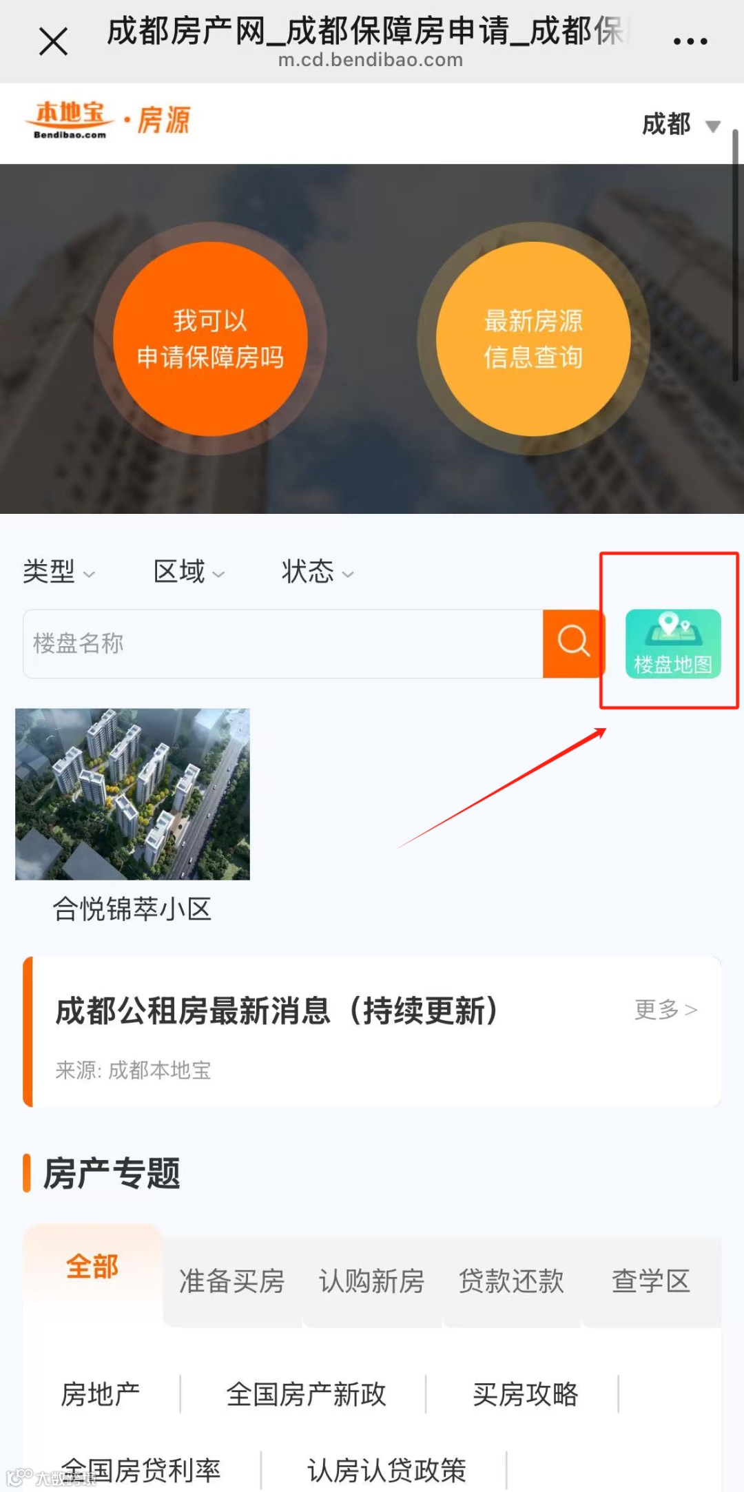可通过“本地宝成都房产”提供的房源专题查看市级公租房的基础信息、分布位置及当前申请状态。进入专题后点击“楼盘地图”,即可直观浏览各房源地理位置。