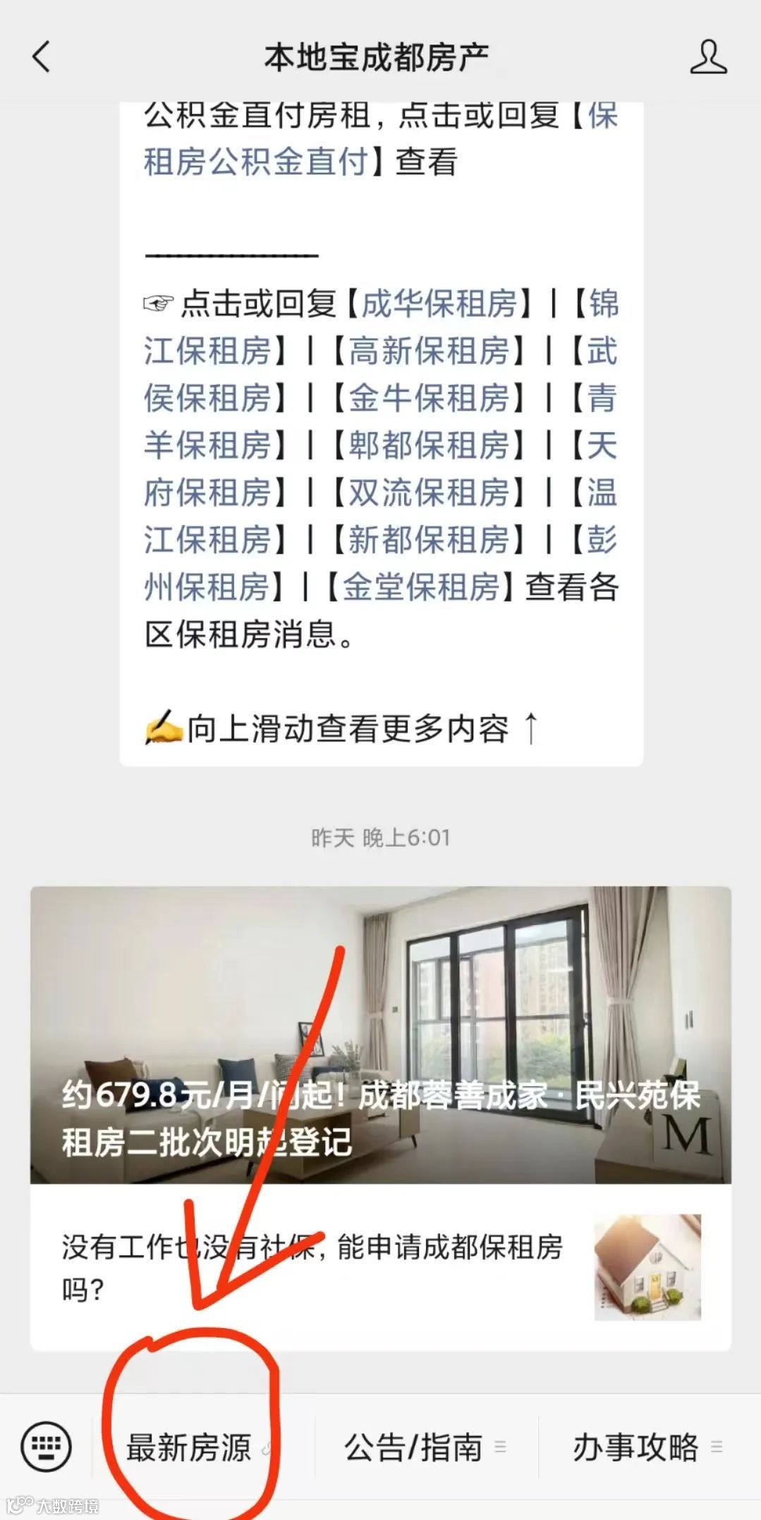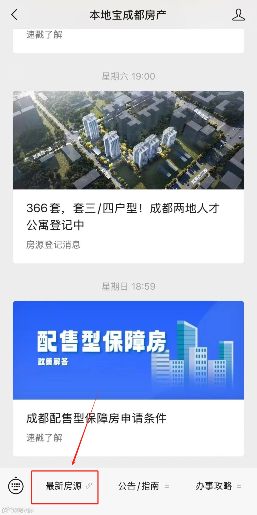 - 进入公众号,点击底部菜单栏【最新房源】,进入专题主页;