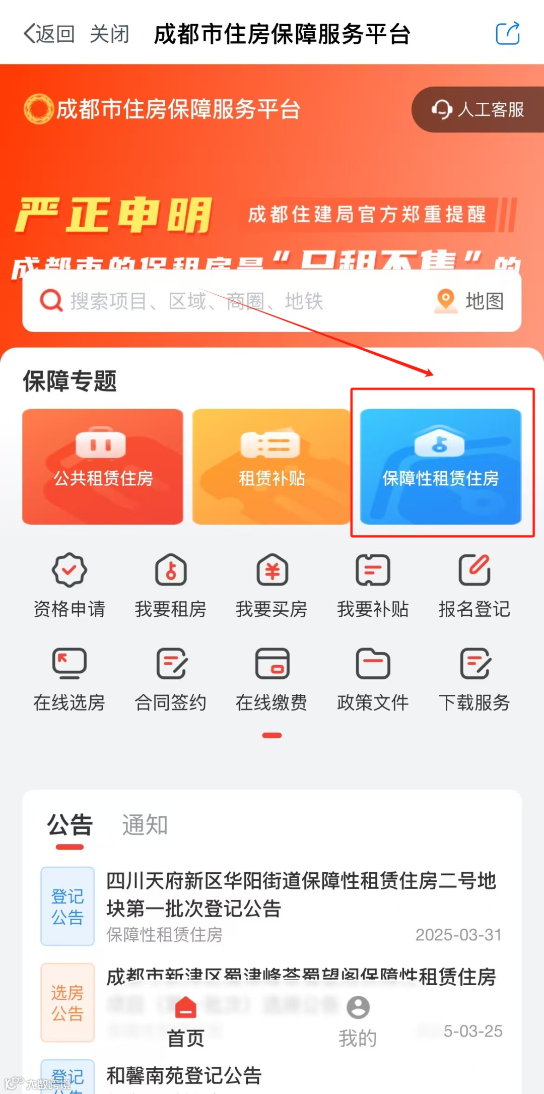 - 使用“天府住房通”微信小程序,点击“资格申请”→“保租房资格申请”。