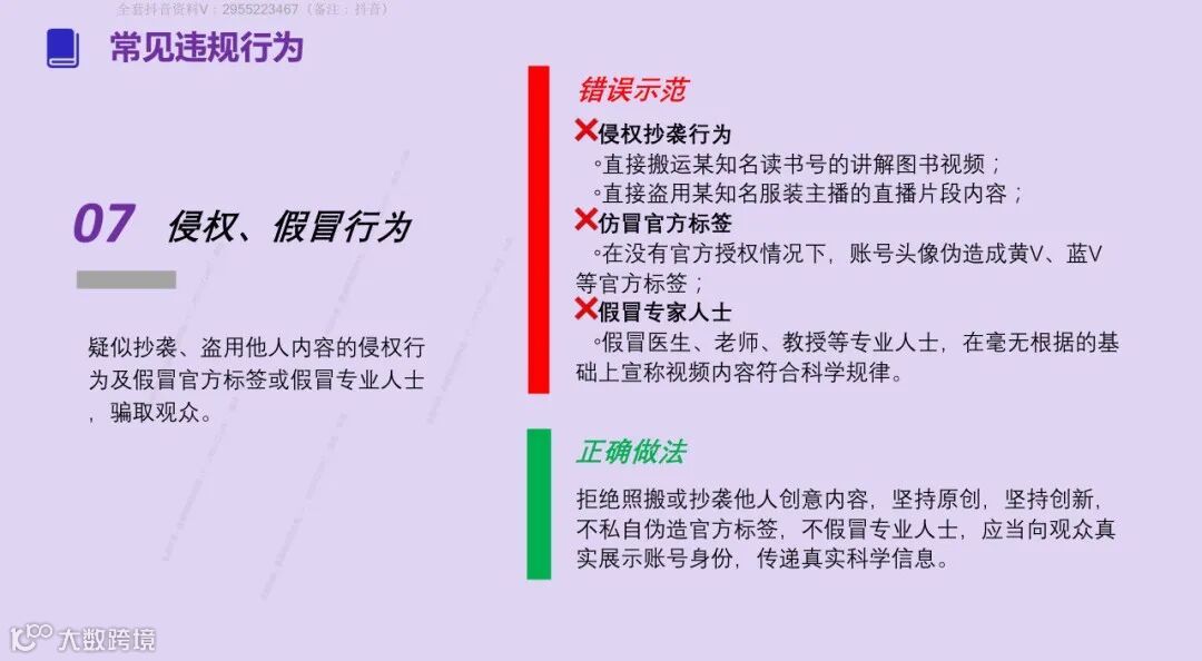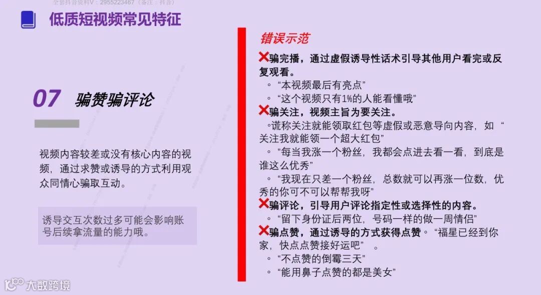 抖音平台对虚假宣传、诱导互动、不当营销等行为严格管控。常见违规包括:发布低质或重复内容、使用违禁词、伪造交易数据、恶意导流至其他平台等。一旦触发,可能导致视频下架、账号限流甚至封禁。