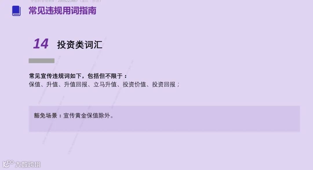- 虚假承诺:如“无效退款”“ guaranteed”“稳赚不赔”