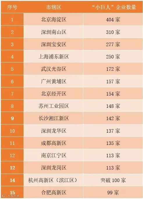 表3:部分市辖区“小巨人”企业数量(数据来源于公开报道)