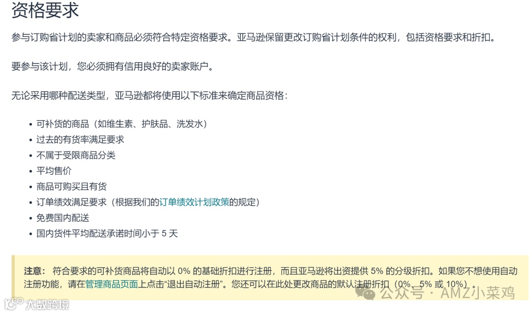商品资格:过去 28 天的有货率大于 90%;不属于受限商品分类;平均售价低于 $200;商品可购买。