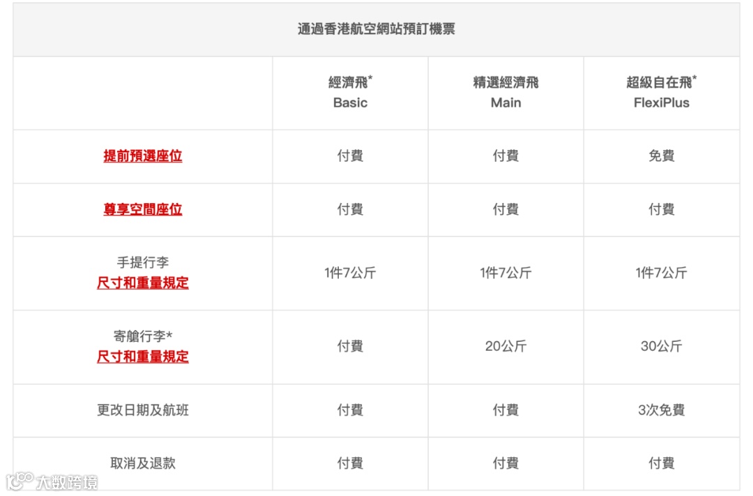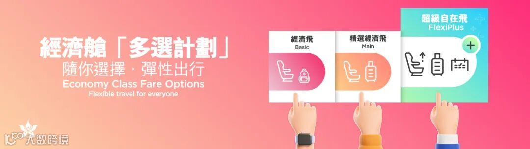 乘客可通过香港航空官网,根据需要选择预订「经济飞」、「精选经济飞」或「超级自在飞」票价计划。
