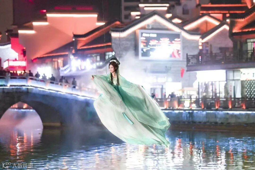 拿着购入的票根去免费挑战刺激的水上飞人&飞天威亚,与真人威亚表演的“飞天仙女”共舞。