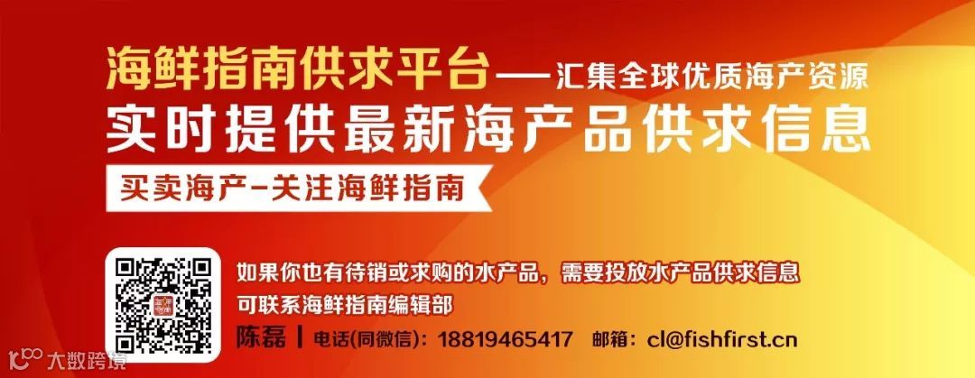 对接优质食材,了解海产行业最新的供求信息,可扫描下方二维码与笔者联系,电话:18819465417(微信同号),邮箱:cl@fishfirst.cn。