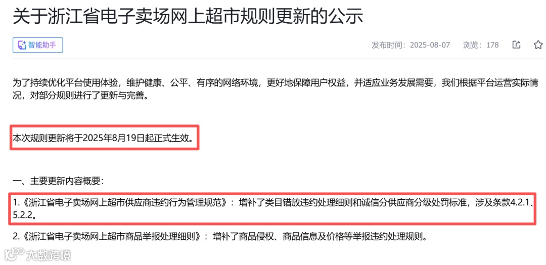 本次规则调整主要适用于浙江新网超供应商。